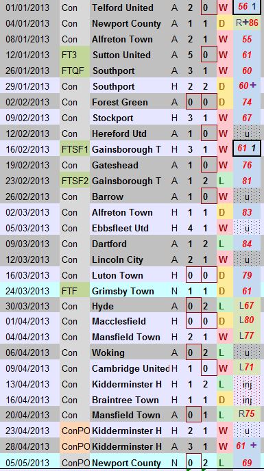 During the “red card” games themselves, a winning position has been thrown away once (Hyde at home), Kidderminster were already ahead when Bishop received his marching orders, Barnet was 1-1 by the time Hunt made it 10 v 9 and it finished 1-1, Halifax remained goalless after Ormerod’s departure and away at Halifax earlier in the season, it was 1-1 when Stephen Wright left the field with the team from The Shay ending up 3-2 victors. It’s perhaps the suspensions coming from the accumulation of yellow cards that is doing greater damage.
